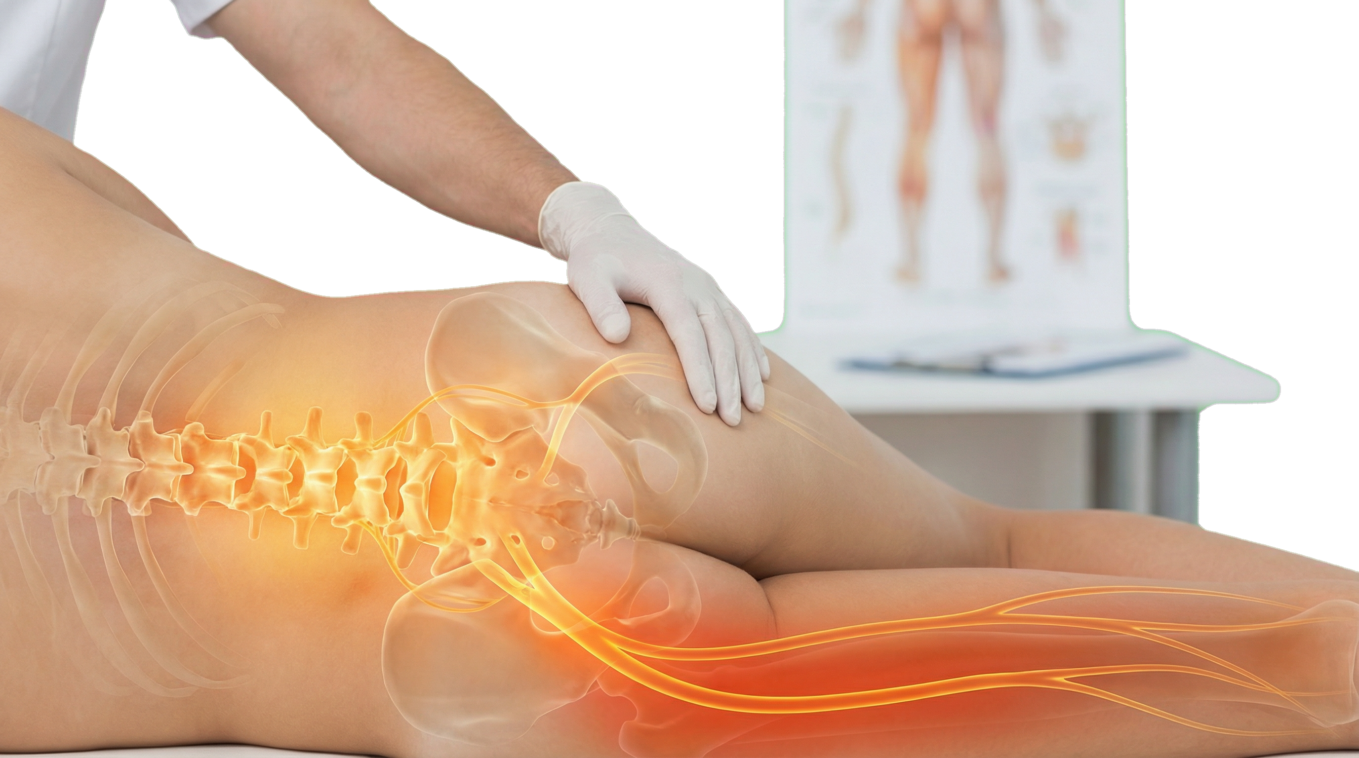 The lumbar spine is the anchor for the sciatic nerve. We work to release tension in the quadratus lumborum (QL) and gluteal muscles, which often compensate for the pain. This helps to decompress the lower vertebrae, creating more space for the nerve roots to exit the spine without irritation.